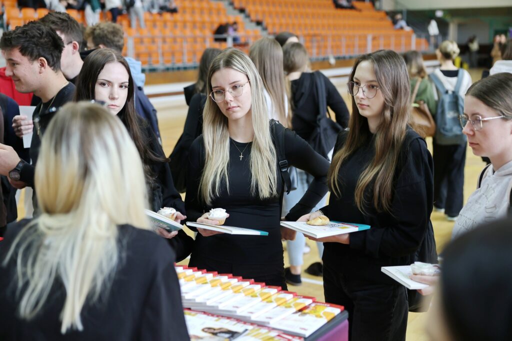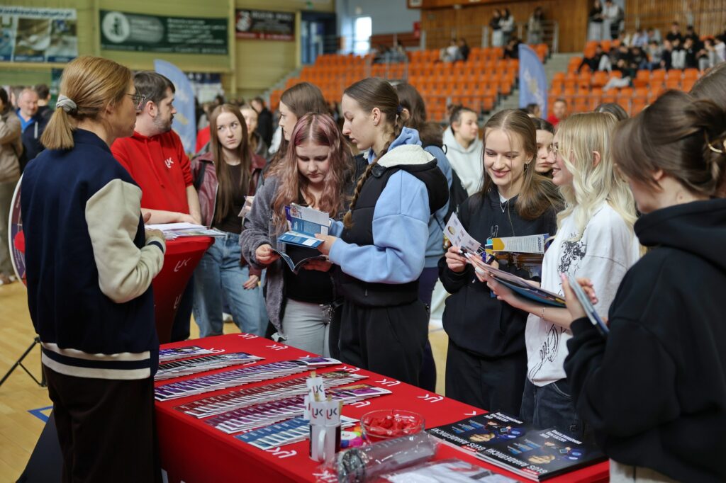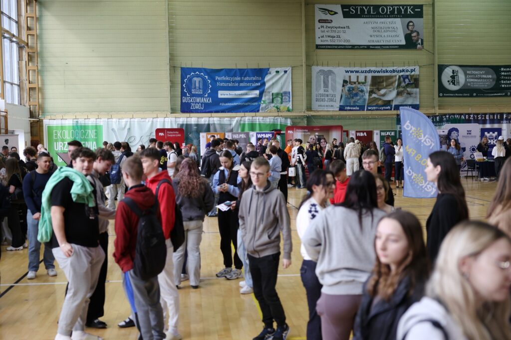 Hala sportowa w Busku-Zdroju wypełniła się uczniami, którzy aktywnie zapoznawali się z ofertą edukacyjną uczelni z całej Polski. Targi były okazją do bezpośrednich rozmów z przedstawicielami szkół wyższych, poznania kierunków studiów oraz możliwości rozwoju zawodowego.