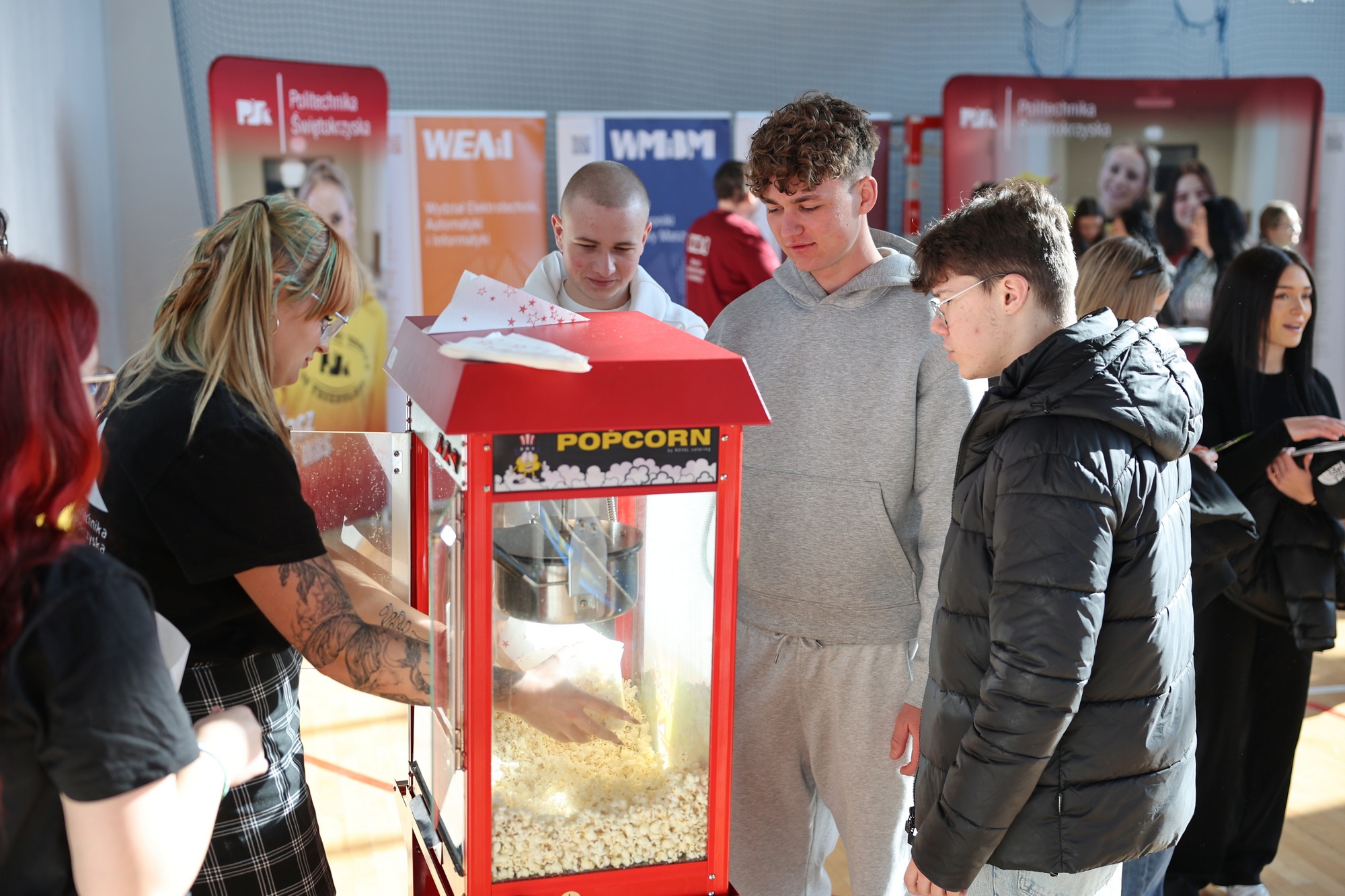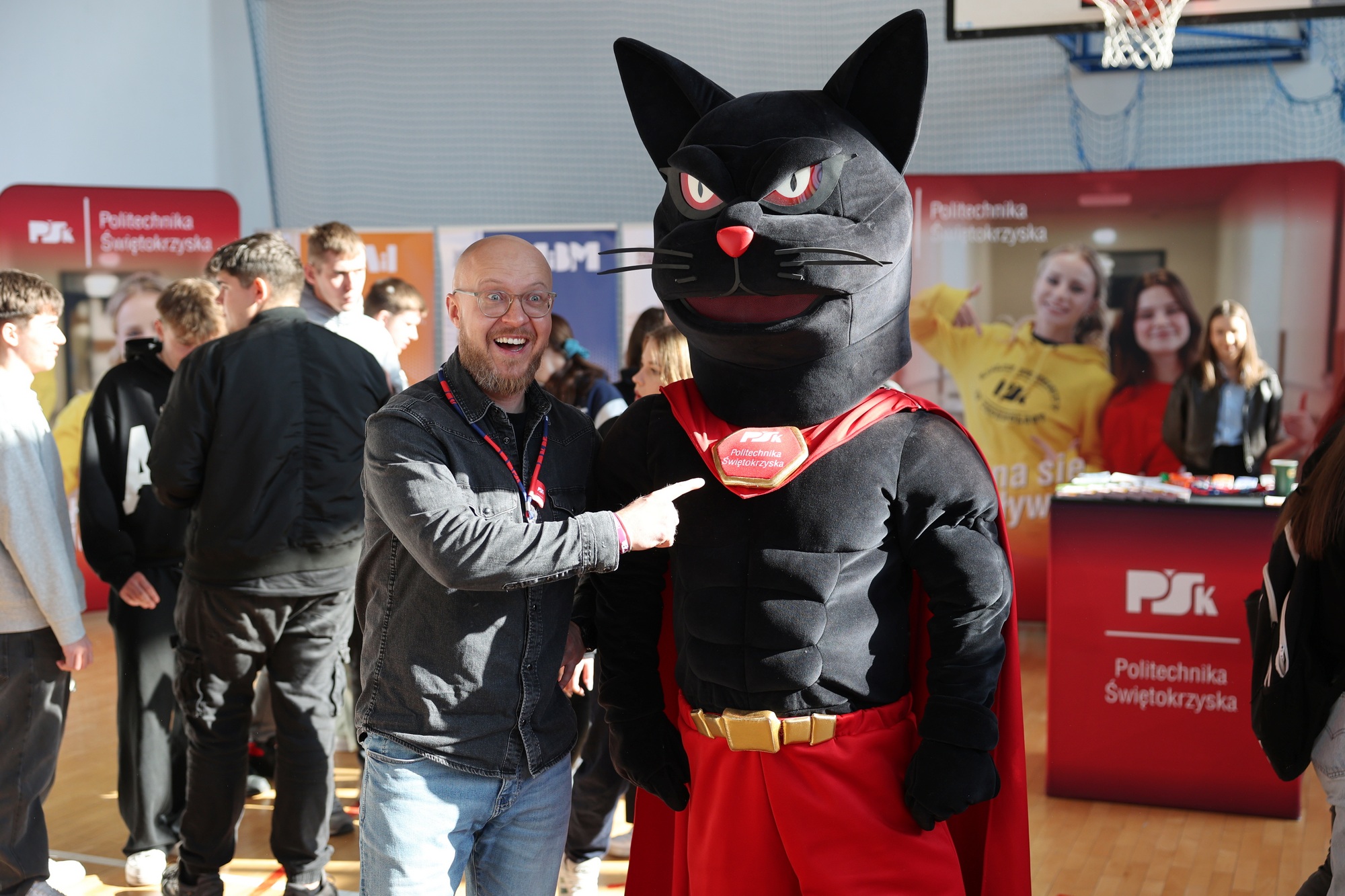 Jak co roku dużą popularnością cieszyła się również maskotka Politechnika Świętokrzyska – czarny kot w czerwonych butach, z którym młodzież chętnie robiła sobie pamiątkowe zdjęcia.